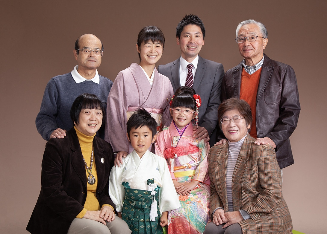 七五三、お宮参り、百日祝い、進入学・卒業記念、十三参り、誕生日、成人式、結婚記念日、お還暦、退職、喜寿etc.静岡浅間神社写真室では、個人/家族/会社/仲間など